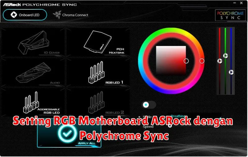 Polychrome Sync memungkinkan sinkronisasi pencahayaan dengan perangkat lain seperti keyboard, mouse, dan headset yang mendukung RGB. Untuk mengatur sinkronisasi, pastikan semua perangkat sudah terpasang dengan benar dan mendukung fitur ASRock.